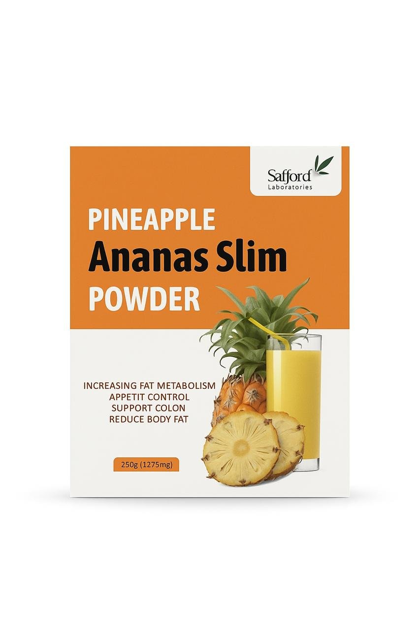 ANANAS SLIM is a food supplement produced from fresh pineapple, ideal for reducing excess fluid, eliminating cellulite, and enhancing digestive function, especially in the digestion of protein. Each sachet contains the active ingredients in a quarter of a 445-gram pineapple, and supplements do not replace a healthy diet. Drink it after eating once or twice a day, it is ideal for dieting and achieving the perfect body.